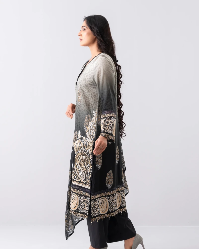 New Smart Fit Embroidered Three-Piece Lawn with Silk Dupatta