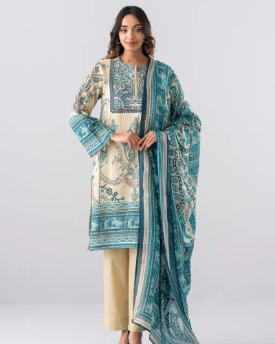 New Smart Fit Printed Two-Piece Lawn wit...